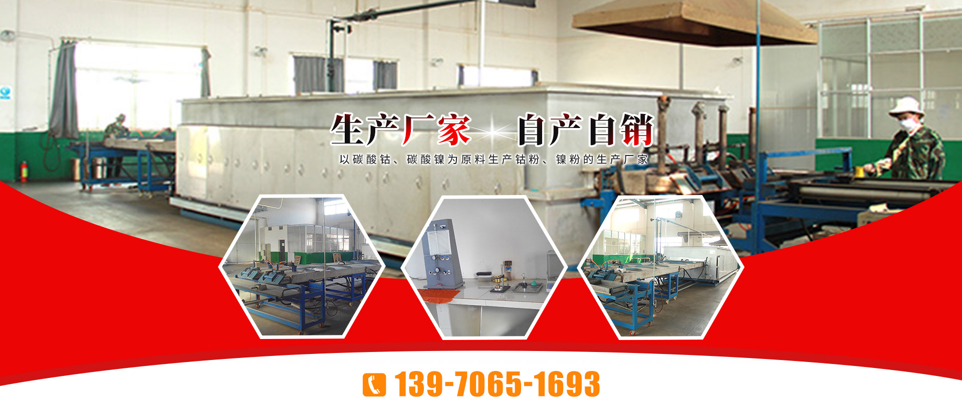 公司成立于2008年5月,注冊資金500萬元。是以碳酸鈷、碳酸鎳為原料生產鈷粉、鎳粉的專業生產廠家,目前主要產品有各粒級鈷粉、鎳粉,鈷粉粒級從Fsss:0.8μm~4.0μm,鎳粉從0.7μm~4.0μm 各粒級產品,目前公司有500噸鈷粉、500噸鎳粉生產線。公司鈷粉、鎳粉產品經機構檢測,產品擁有較高水平,且超細顆粒鈷粉(費氏粒度小于0.8μ...